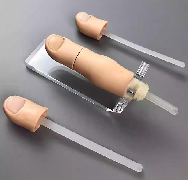 一、功能特点: ■ 拔甲术练习模块采用高分子材料制成,肤质仿真度高。■ 模型为正常以及受感染的指头,具有真实的皮肤、指甲及甲床。■ 提供一个指头支架用于固定指头模块以及2个可更换手指。■ 可反复进行练习。